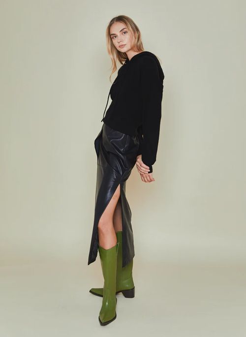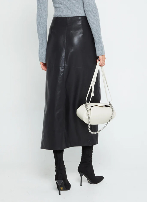 Oh so chic, this on-trend maxi skirt is made from super soft faux leather with a sleek silhouette and side slit.