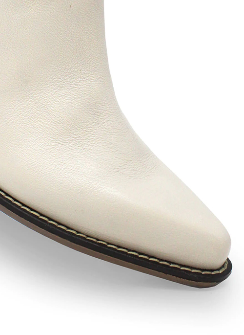 Geometric lines and curves take over the design of our country type boot. The necklines to the side allow the leg to be slimmed down. A minimalist and conceptual version, adapted to different skin textures and colors, makes Issa the cowboy boot that you can combine with everything. Its pointed last design and its heeled sole lined with natural cowhide are totally avant-garde. Aside from the fact that they look amazing, they are super easy to take off and put on.