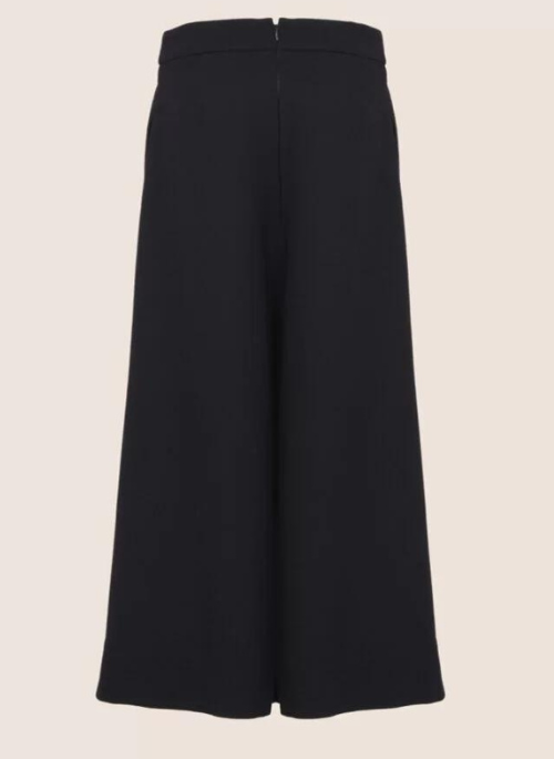 Black culotte trousers in wool crêpe with yellow contrasting front band, side pockets and back closure with central visible zip. Head designed and made entirely in Italy.
