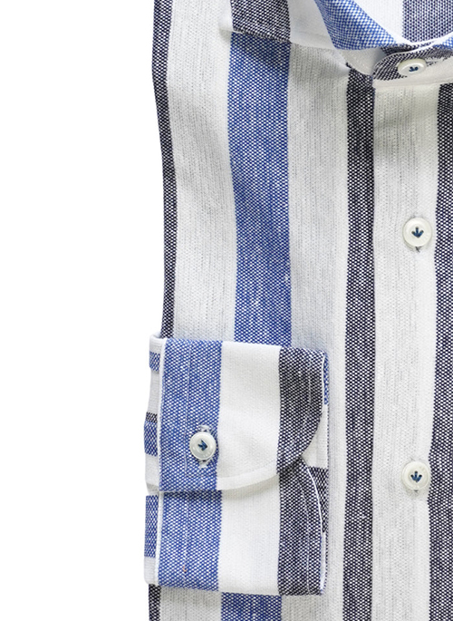 Jersey stripes is a casual shirt model produced with a JERSEY cotton blend fabric with mother-of-pearl buttons handmade in Italy by hand.