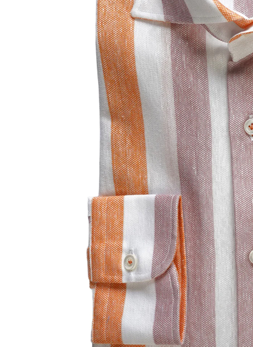 Jersey stripes is a casual shirt model produced with a jersey cotton blend fabric with mother-of-pearl buttons handmade in Italy by hand.