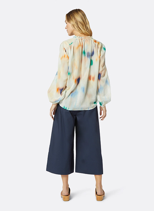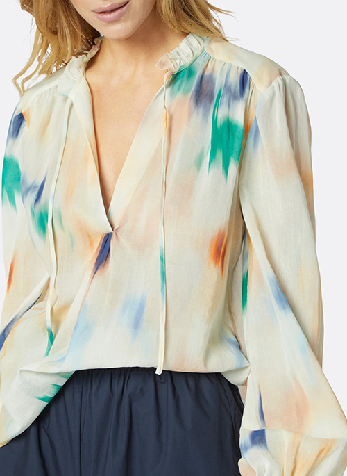 A lively color in cotton, The Jindrah is this season’s must-have versatile piece. Featuring a round ruffle collar with adjustable slim tie straps, this blouse, in its relaxed silhouette, can be worn almost anywhere.