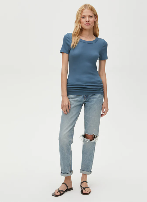 Jolie is the quintessential elevated basic, with a t-shirt silhouette and ruched details for a flattering fit.
