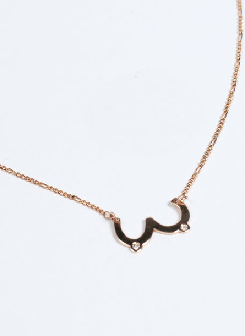 Juntas meaning “female togetherness,” celebrates womanhood, motherhood, and breast cancer warriors. This women’s 14k gold necklace is designed as the silhouette of boobs with diamond nipples as a statement to normalize public breastfeeding. This ethically sourced and meaningful diamond necklace is a must-have for the feminist who is inspired by minimalist fashion.