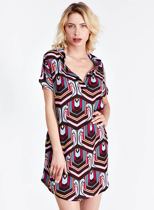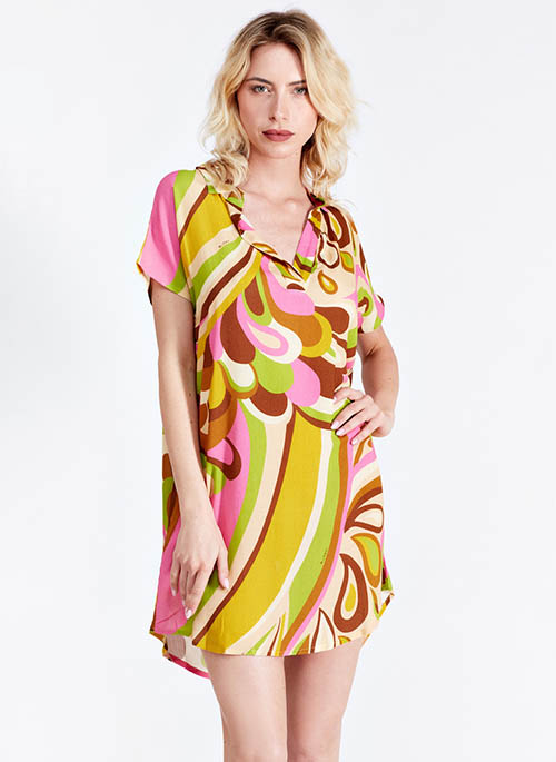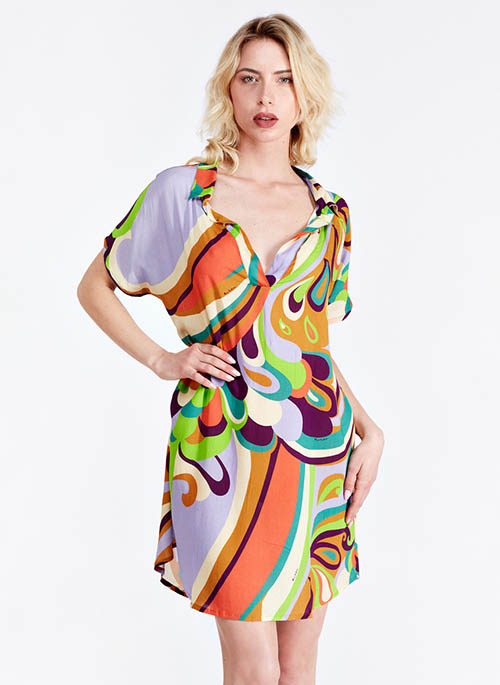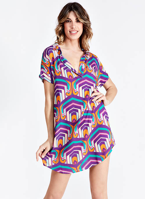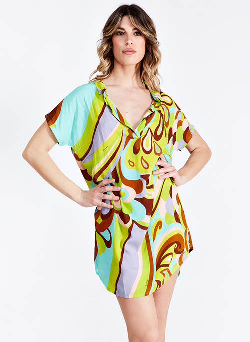 Spice up your summer wardrobe with this versatile and lightweight caftan in a flowing design. Shirt suitable for all body shapes, soft and linear, it will become a precious ally for beach looks. Suitable for both the beach and an aperitif, it is adorned with a practical collar that gives the outfit charm. Practical and comfortable caftan is available in different prints of the collection to give an extra touch to summer clothing.