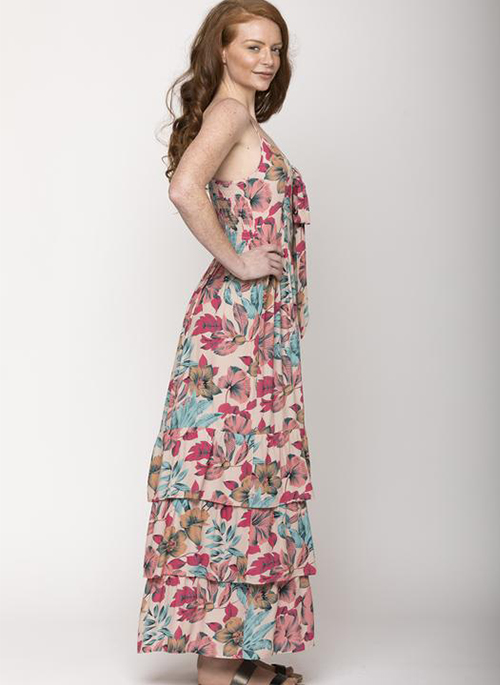 - Maxi/midi/knee-length convertible sundress with adjustable spaghetti straps, smocked back, detachable ruffles, belt, and bonus brooch