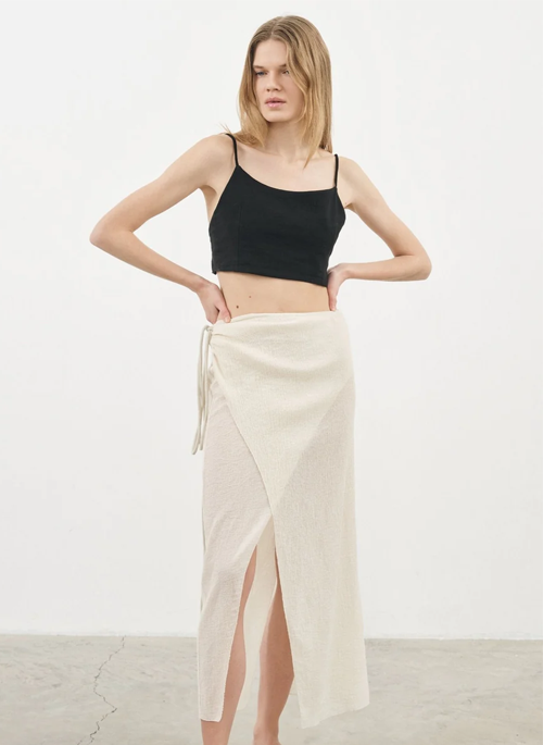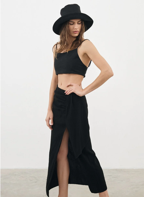Minimalist and easy wearing, mid-cut shape, adjustable tie-up shoulders & elastic back for best fit. Kala Top Black has a flattering shape that creates a soft and easy appeal, making it a charming essential to your summer wardrobe. Cut from a crisp and creases structured cotton is the best option for layering in during the summer.
