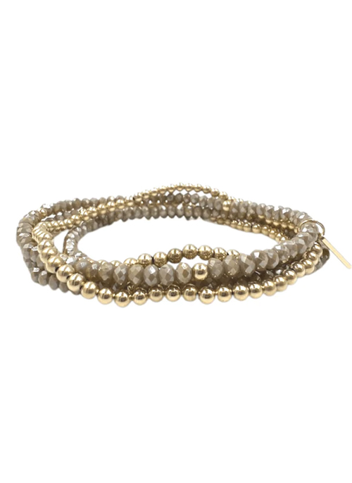 The Karma Collection. Put good into the world and good will come back to you! This elegant 5-stack features two 14k gold-filled beaded bracelets and three champagne and gold filled beaded bracelets.