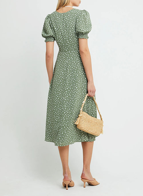 Oh so easy, this styles' simple silhouette is elevated with adorable puff sleeves and a flattering, ruched bust. Finished with a cool side slit.