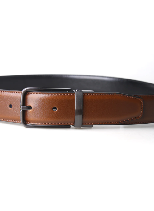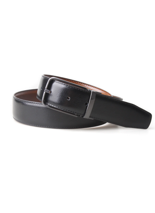 - A luxurious 3.5 CM leather smooth reversible cognac & black dress belt.