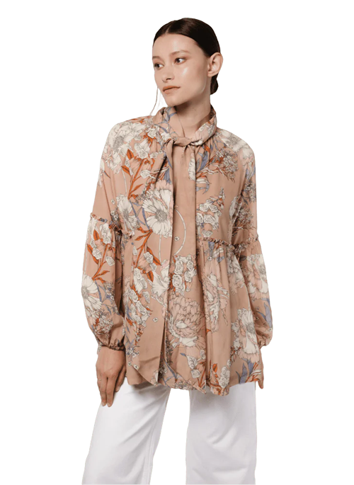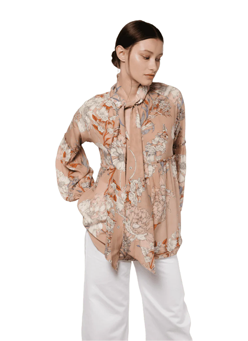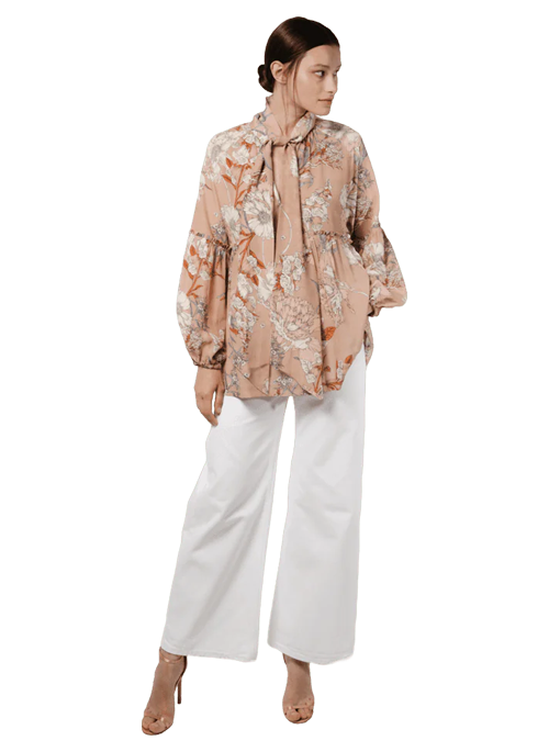 Experience luxurious comfort with our Kenya blouse, made of 100% Crep de Chine Silk. This elegant blouse features balloon sleeves and a tie-neck, elevating your style. Its soft, silky fabric will keep you comfortable all day long. Upgrade your wardrobe with this must-have piece.