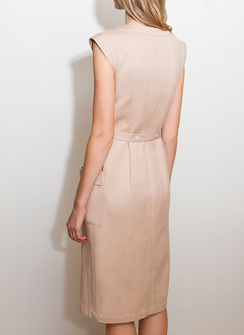 Simple and effortless denim dress that is stylish and unique at the same time. Decorated with effective pockets and a tied belt. Embroidered details on the belt. Made of organic cotton. Designed in cooperation with Kristiina Jeromans.