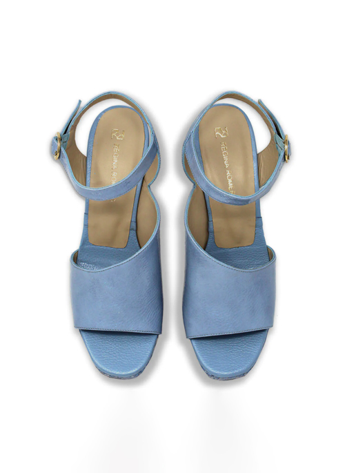 Kiana is our new platform sandal, built on our iconic triangle heel. A fun and feminine contrast of textures that wrap the heel and platform, with a matching upper part. Her selection of pastel colors makes it the basic model for your closet this season.