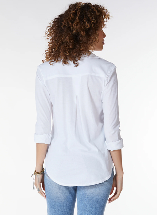 The classic button-up shirt look, but made in our most-loved knit jersey fabric for all of the stretch and comfort you need! Featuring a button front placket with matching buttons, collar, chest pocket, and buttoned cuff at the sleeve openings.
