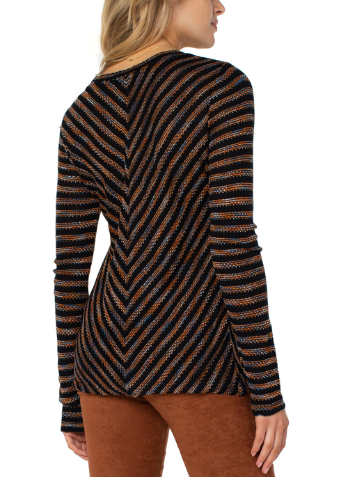 This long sleeve knit top features a unique mitering detail on the back and the shoulders for a truly flattering fit. Easy enough to lounge around the house in, chic enough to wear out in the city.