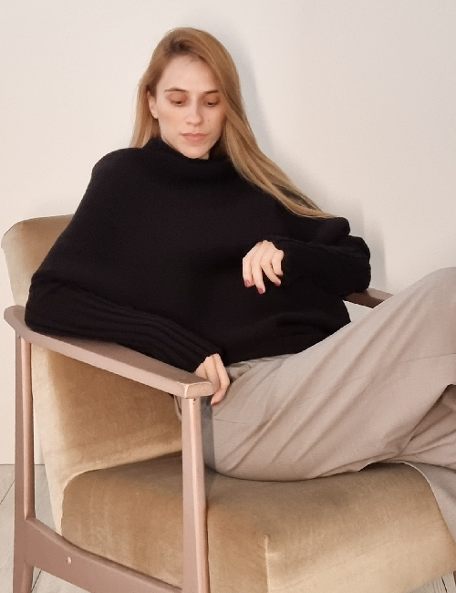 Exquisite knitting, long sleeves and soft material make it a charming piece. You will look great in this sweater whether you are at home, office or out for a walk. This trapeze sweater is great for layering. You can throw it on over any outfit to keep you warm and add a pop of style