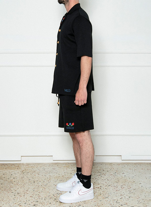 The Cotton shirt is knitted from lightweight cotton blend and has embellished with hand embroidery. Fits perfectly with his shorts in the same color.