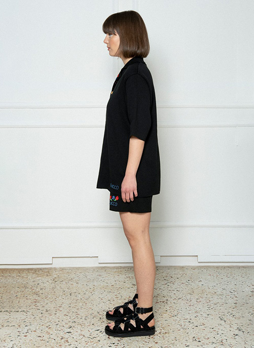 The Cotton Shorts in black are knitted from lightweight blend cotton and fits perfectly with his shirt in the same color.