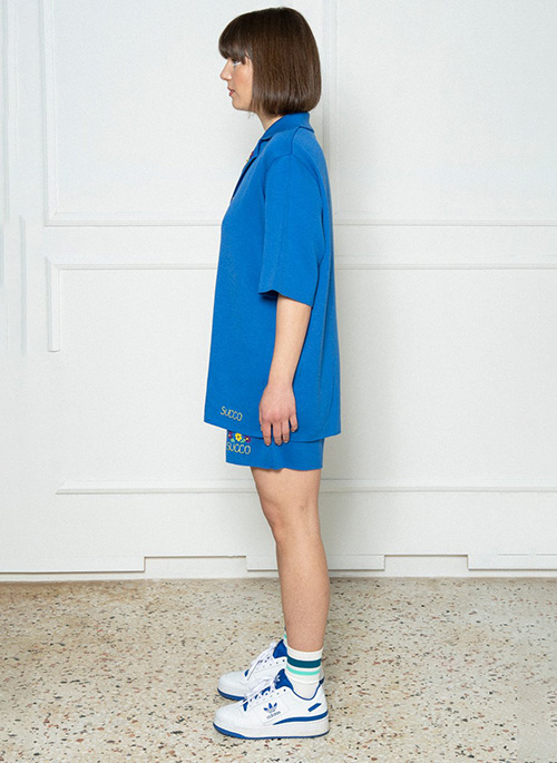 The Cotton Shorts in red are knitted from lightweight blend cotton and fits perfectly with his shirt in the same color.