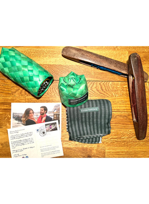 - You receive your Krama rolled up in its hand-woven palm leaf case.