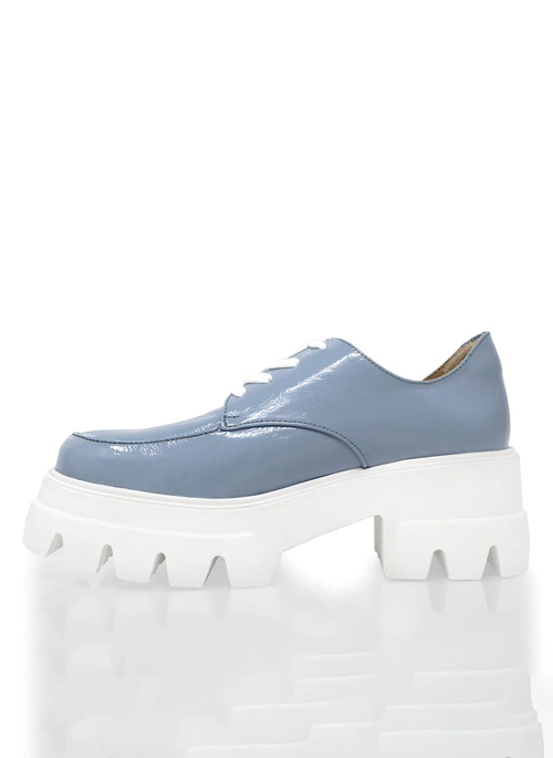 A Bostonian classic reinterpreted in an urban tennis. Its chunky sole is ultralight and comfortable to walk on. Created in patent leather, perfect for those rainy days.