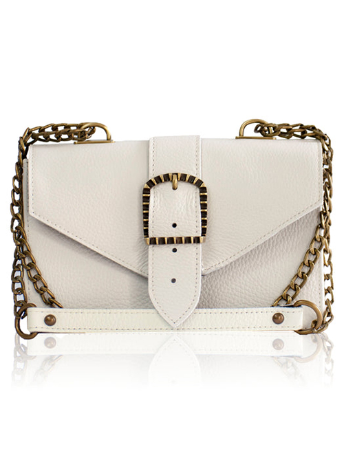 Kyra Leather Shoulder Bag. Never before a small bag has been so impressive!. The rock design gives an edgy tone to its feminine size. Its metal buckle magnetizes the eyes, while its single chain allows it to be held in many different ways. Wonderful in every way, Kyra leather shoulder bag is made for women who do not negotiate their style!
