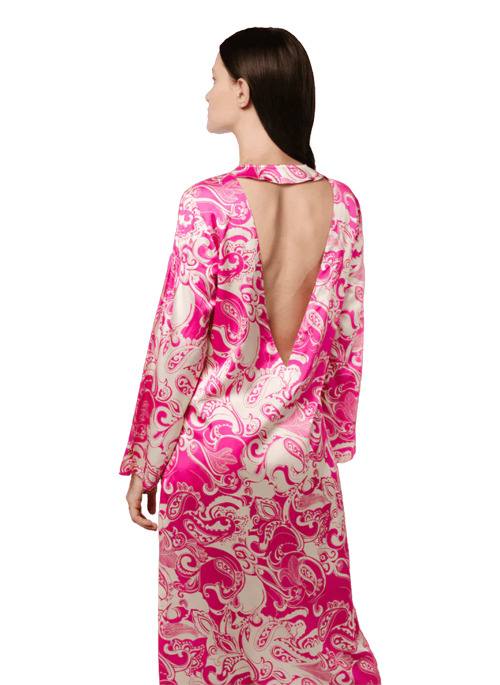 Introducing Lahore, a statement maxi dress crafted from our luxurious Silk Viscose Spandex blend. This dress is not only soft and comfortable, but its unique design featuring a backless style and decolte opening, makes it the perfect addition to your wardrobe. Embrace femininity and feel confident in this beautiful piece, designed to flatter your figure and elevate any occasion. Order now and experience the ultimate in comfort and style.