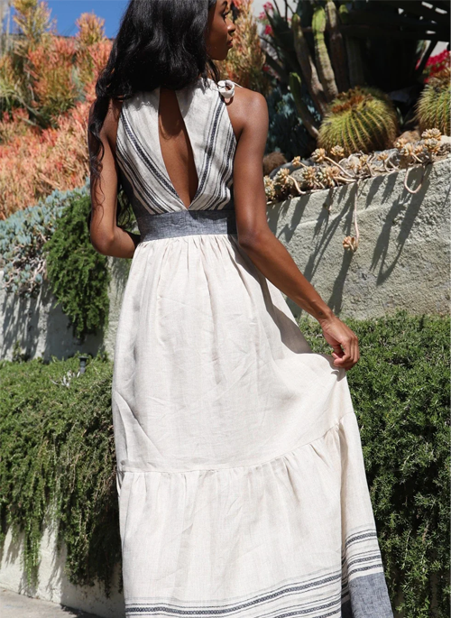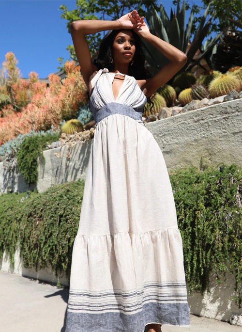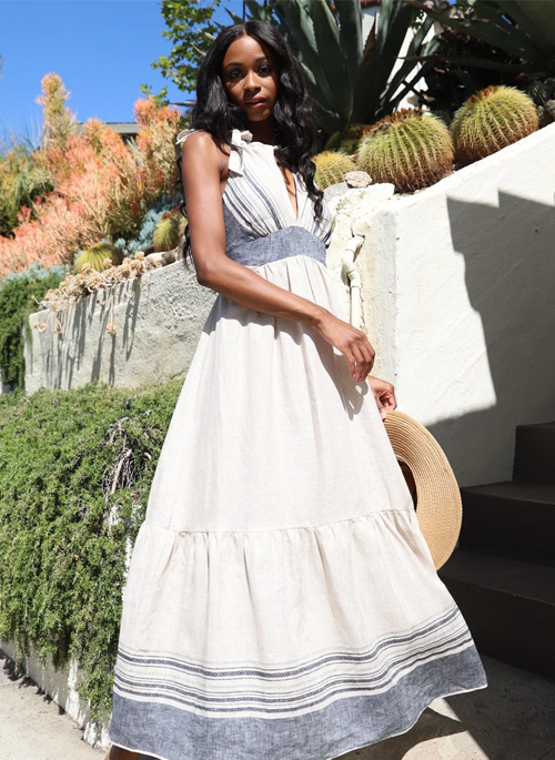 Float through the room like a Goddess in our super comfortable lightweight Lamar Maxi Dress. Featuring a fitted bodice with an adjustable neckline and self-tie shoulder strap.Details: