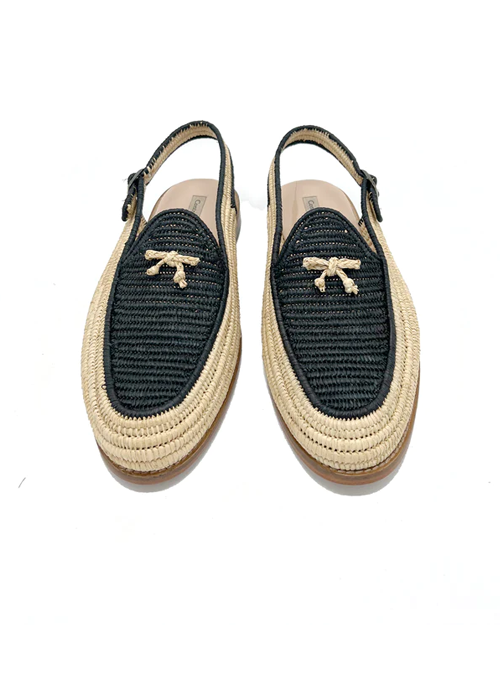 - Upper: woven natural raffia