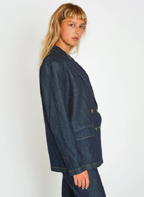 Whether an evening out or a casual lunch, our denim blazer is perfected to slip over a dress or pleated trousers for that polished look. It's an easy way to take any outfit up a notch.