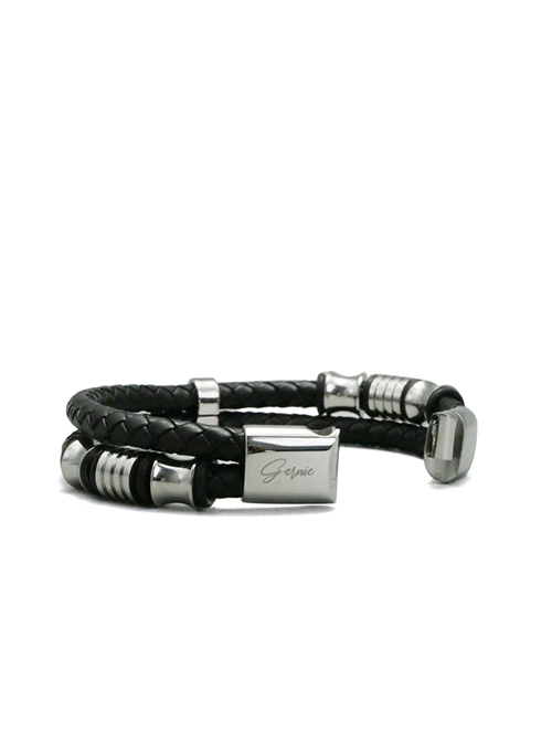 Our men's Santa Monica designer bracelet features a handsome genuine leather black braided strap accented with stainless silver detail. In addition, this leather strap bracelet is complemented with a stainless steel magnetic buckle for a sleek look.