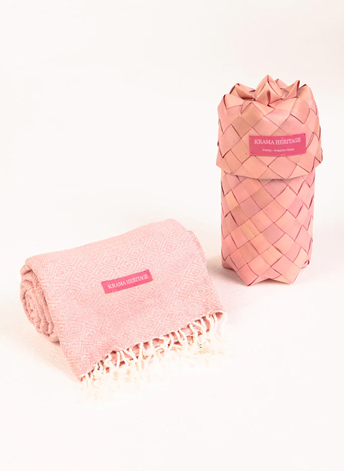 • You receive your Krama rolled up in its hand-woven palm leaf case.