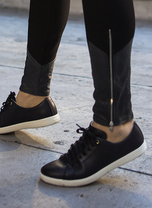 Ponte legging with lambskin leather panels