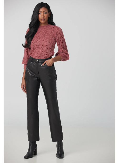 These lambskin straight-leg pants will become your go-to pair of leather pants. Comfortable and stylish wear them to the office with a jacket or on weekends with a knit.