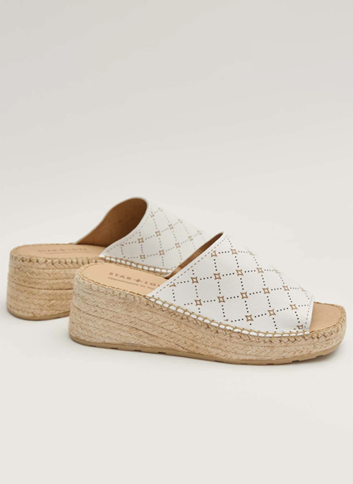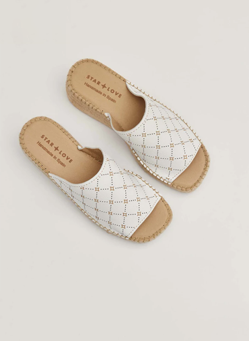 - The upper of the design is made of white leather with a design of little stars and squares. The platform is made with natural jute and its insole is padded and very comfortable. All our models have been handcrafted in La Rioja (Spain).