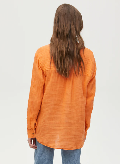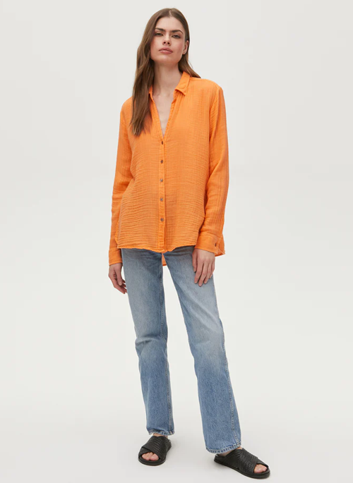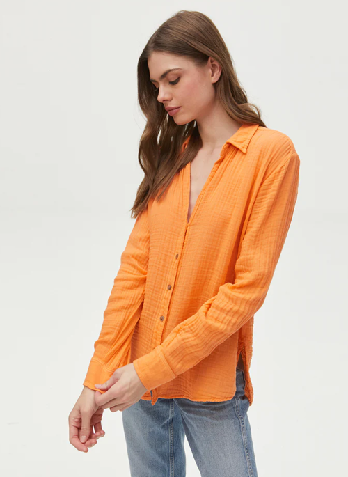 A relaxed take on a classic style, this long sleeve button down blouse offers a breezy alternative to the classic collared shirt. Outfitted in our double gauze fabric, its loosely structured style is a casual essential.