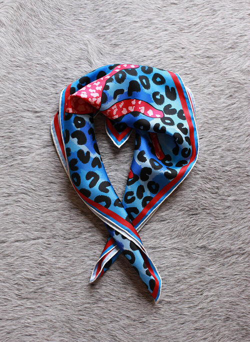 Original hand illustrated leopard surrounded by leopard’s footprint. Every print is hand-painted in our New York design studio and is imbued with personal meaning and storytelling. Each scarf is packed with the high end gift box.