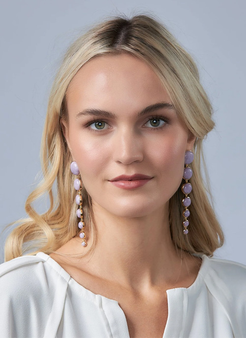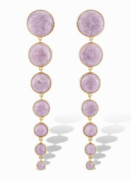 Inspired by melting icicles, our Dropping Circles statement earrings in Lepidolite add a bold pop of color to your look. Add them to any outfit, day or night for colorful fun.