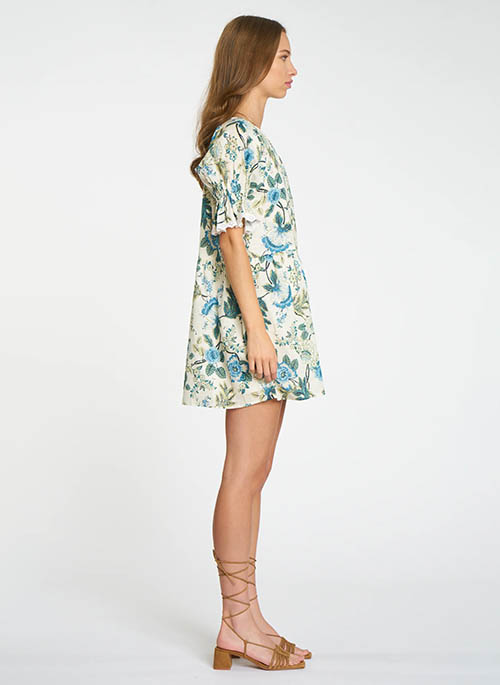 A cute 3/4 raglan sleeve silhouette with ruffle cuff details, the Lex Dress creates a boxy and relaxed fit that compliments any body type. Cut in a Blue China floral print, this piece gives off a soft and simple summer look.