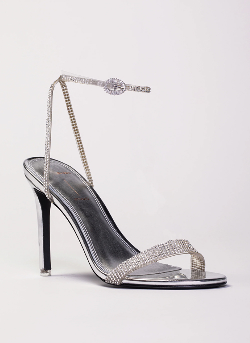Grab our LEXI to glam up any evening outfit. This round toe high heel sandal with crystal touches all around will make you the shining star of the night.