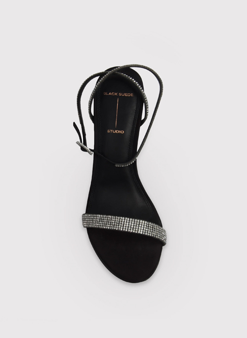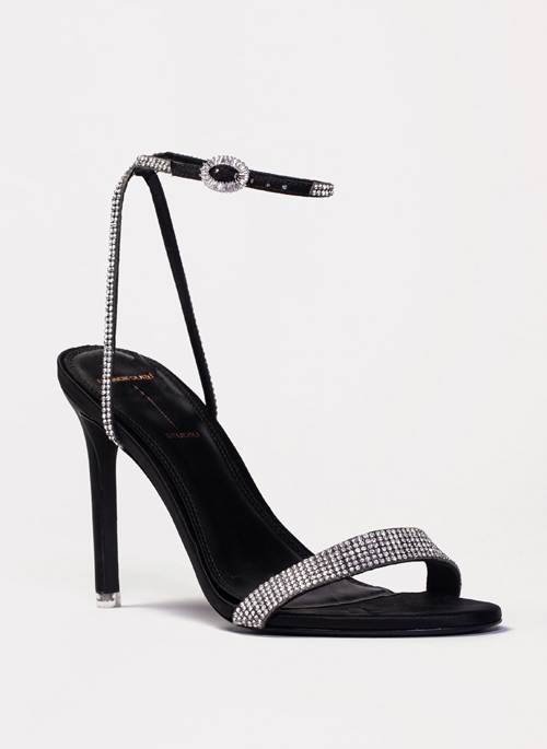 Grab our LEXI to glam up any evening outfit. This round toe high heel sandal with crystal touches all around will make you the shining star of the night.