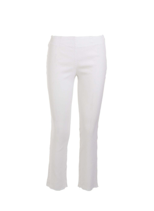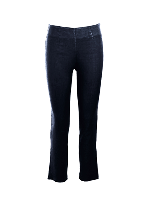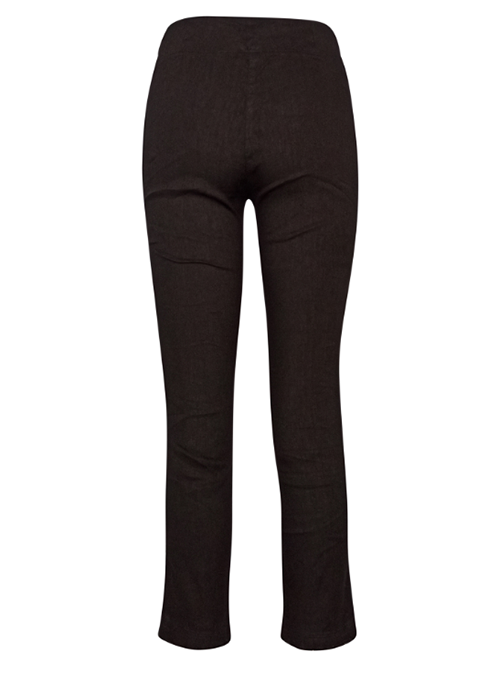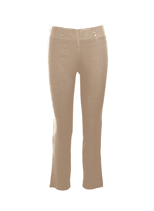 Slim fit, high-rise pants, trimmed at the hem. Cut from linen blend stretchy jersey fabric. Pair it with crop tops or linen gauze blouses.