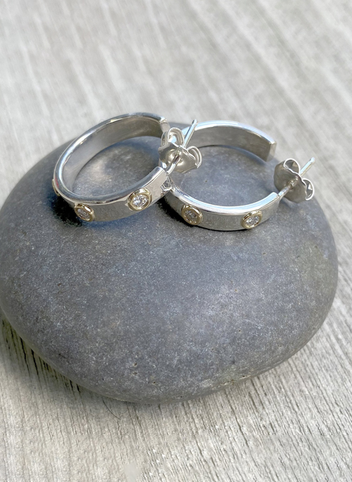 - Three 2mm diamonds on each hoop