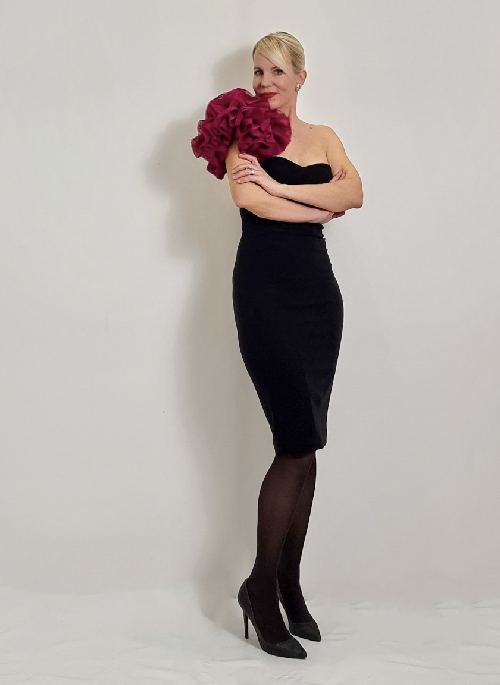 Wear it without sleeves! Wear it with sleeves! Wear it with one tulle sleeve in burgundy for an added pop of colour!