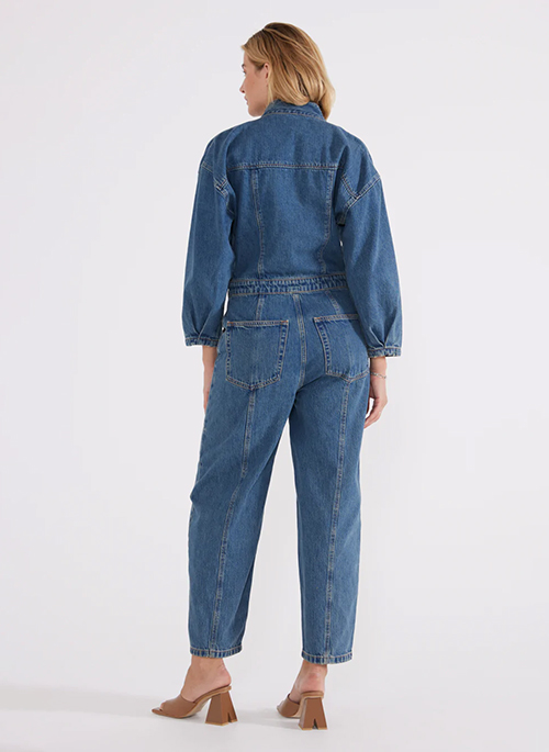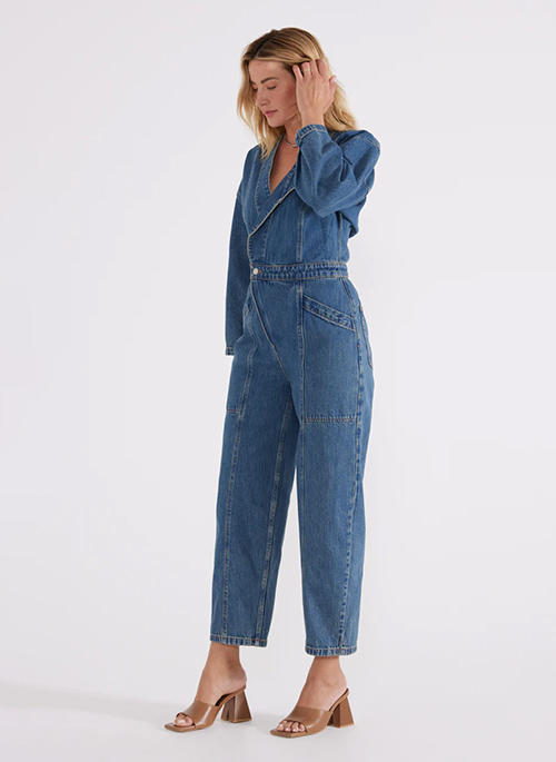 A strong stance for an easy fit, the Liv jumpsuit has a polished utility vibe with volume sleeves, an asymetrical neckline and seaming details.