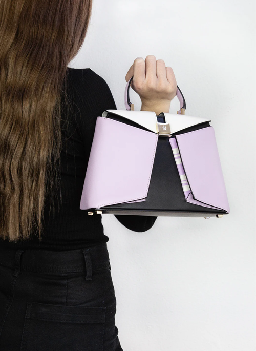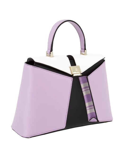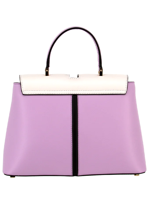 Calfskin handbag with flap closure, fixed handle and adjustable shoulder strap. The flap covers the main compartment by embracing the two front pockets and accentuating the geometric play of the volumes. Internal pocket with zip. Front closure in metal and light gold plated finishes. Handmade in Milan with fine materials.