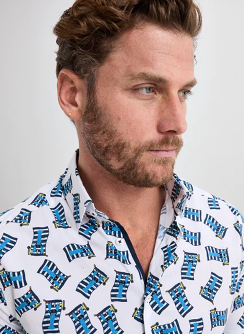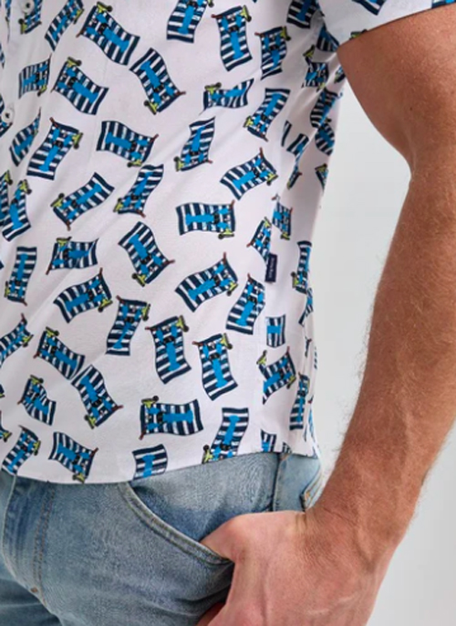 Our White Lobster Short Sleeve Print Shirts are made with cotton - an ideal fiber for the summer with natural breathability and moisture wicking. For extra comfort and ease of movement, we added stretch to these bases then silicone washed them for a super soft feel. All patterns are carefully designed in-house.