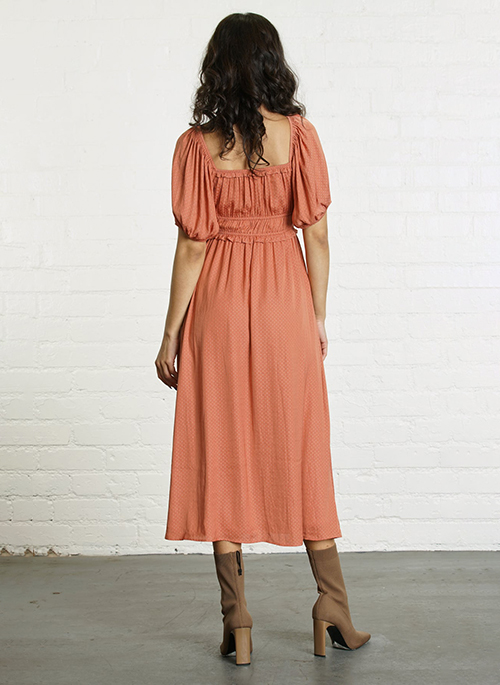With its A-line midi-length hem and smocked bodice, the Lola Dress creates a beautiful bohemian profile juxtaposed by intricate details.