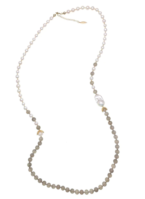 This handmade necklace is made of freshwater pearls with gray agate , baroque pearl with Japan golden plated brass findings. Wear it as single long necklace or double wrapped from day to create your own style. It's timeless and gorgeous which can be worn with blouse, midi dress or knitwear both looks stunning! Pair with Farra freshwater pearls earrings and bracelet to complete your look. Also, this is a very nice gift for birthday, anniversaries or festivals.