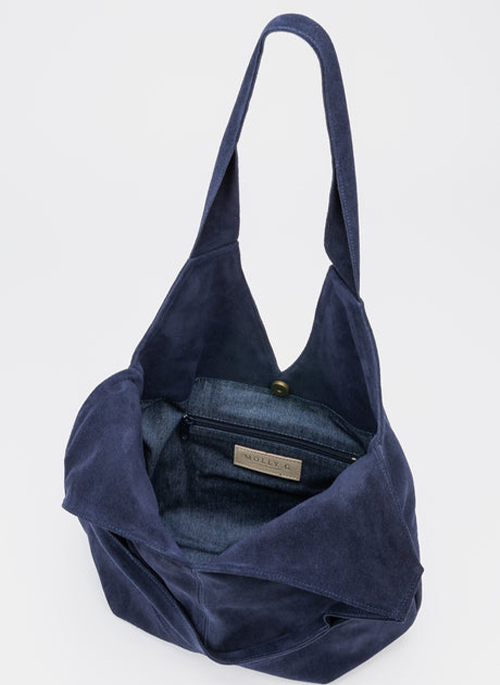 Here is our refined take on the hobo bag. Now in a rich, suede leather. Lined in chambray, Louise features three inner pockets and signature stitching on the rich pebbled leather exterior. Combine all that great stuff with a fantastic geometric shape and you are carrying Louise, the bag for the modern Molly Muse.